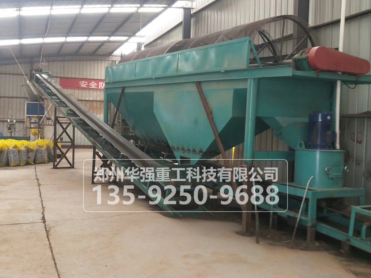 從制粒成型系統(tǒng)輸出的豬糞有機(jī)肥,粒徑有差異,需要篩分分級(jí)。選用的回轉(zhuǎn)式篩分機(jī)要求振動(dòng)小,噪音低,換篩方便,且裝有篩面清理裝置。建議配備自動(dòng)回料系統(tǒng),篩分不合格的大、小顆粒物料,經(jīng)過(guò)皮帶提升機(jī)輸送出來(lái),重新粉碎后送至制粒機(jī)繼續(xù)造粒,有助于提高生產(chǎn)線(xiàn)的連續(xù)作業(yè)能力。
